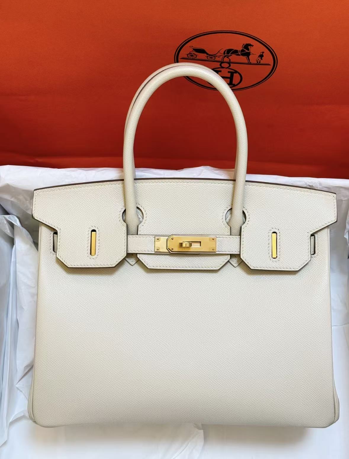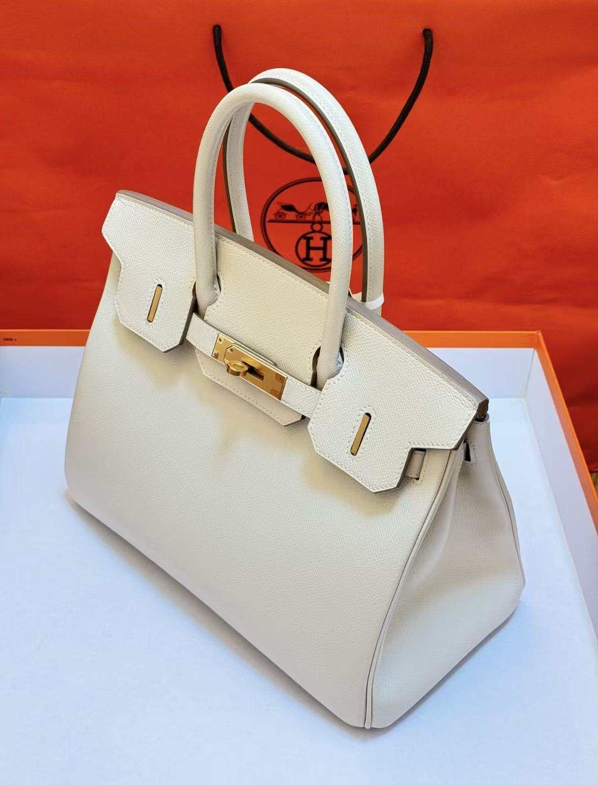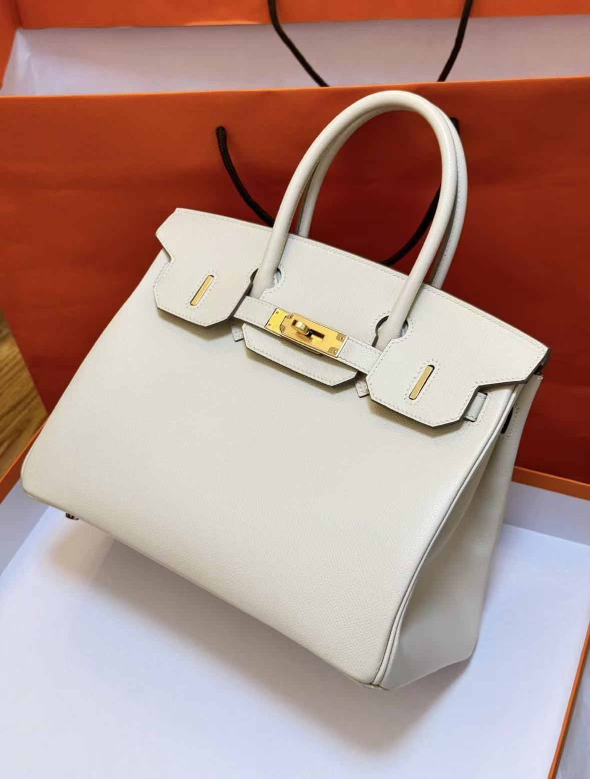 HERMES Birkin 30 Gold Buckle Women\'s Edition 10 Craie Milkshake White