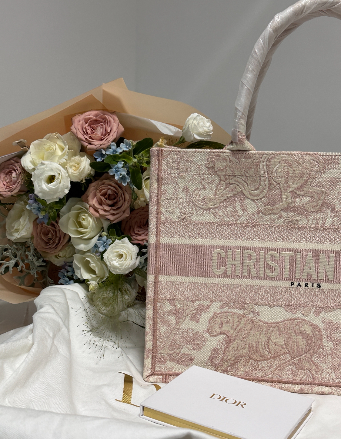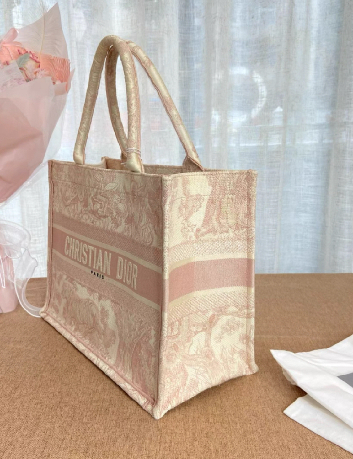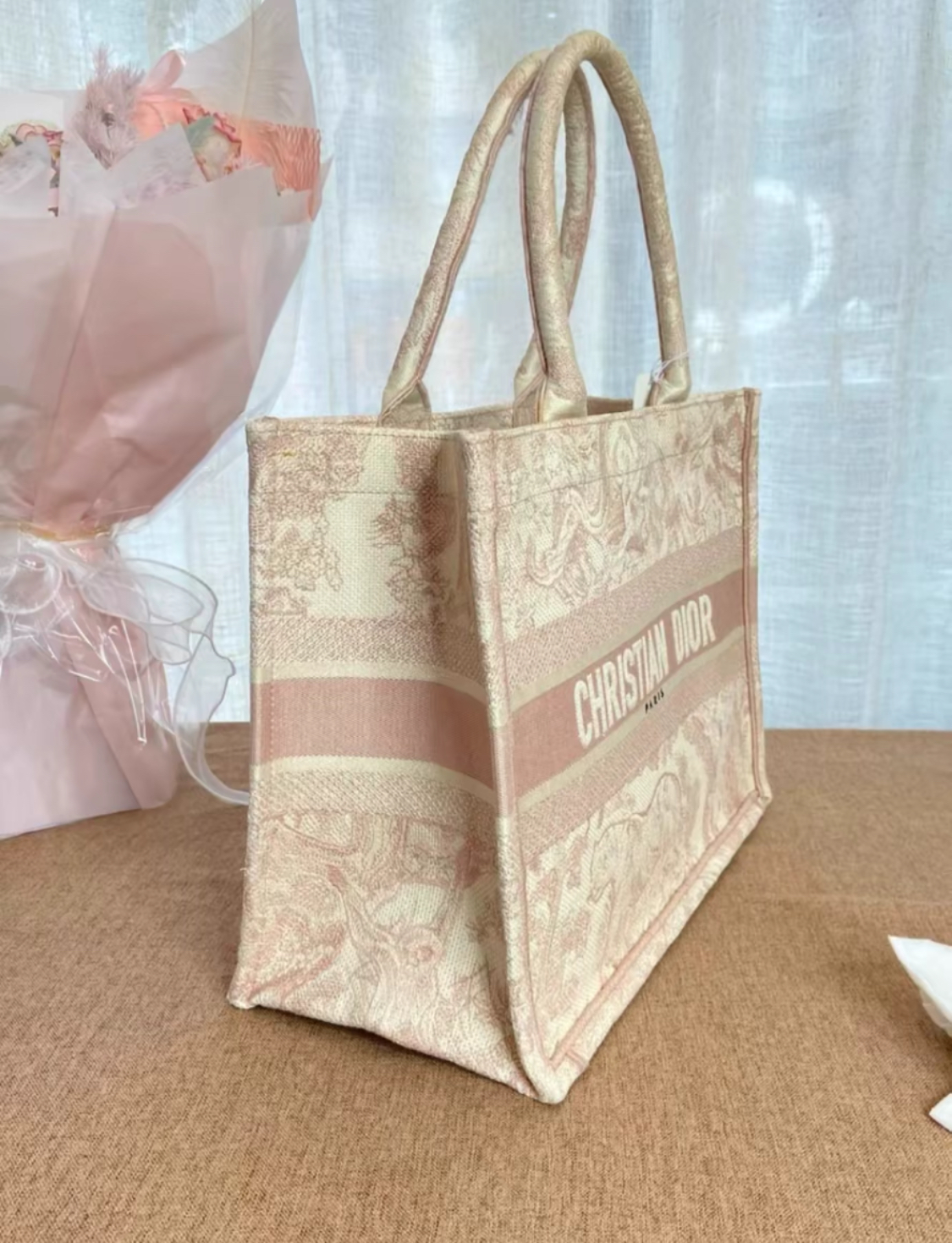 DIOR BookTote classic brand Logo embroidered handbag, Tote bag, shopping bag, medium-sized handbag, pink for women